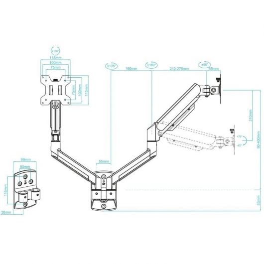 - Peso soportado de pantalla: Mínimo 2 kg, Máximo 10 kg por cada brazo