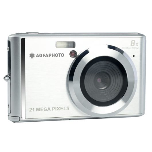 Cámara compacta AGFAPHOTO DC5200 en color plata con 21MP, sensor CMOS y visor fijo de 2.4″, grabación de vídeos en HD, incluye batería y cargador