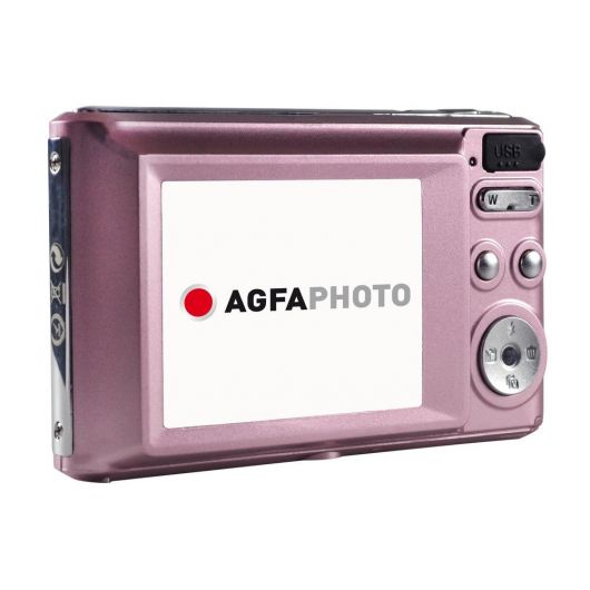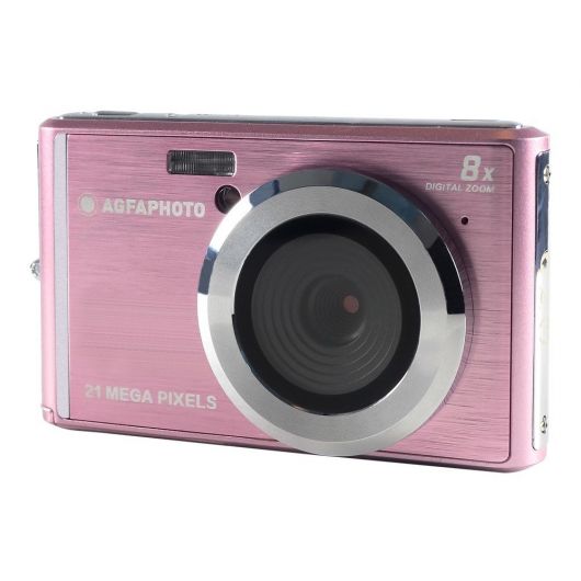 Cámara compacta AGFAPHOTO DC5200 en color rosa con 21MP, sensor CMOS y visor fijo de 2.4″, grabación de vídeos en HD, incluye batería y cargador