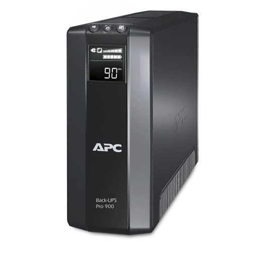 APC Back-UPS Pro. Topología UPS: Línea interactiva, Capacidad de potencia de salida (VA): 0,9 kVA, Potencia de salida: 540 W. Tipo de salida AC: Tipo F, Cantidad de salidas AC: 5 salidas AC. Tecnología de batería: Sealed Lead Acid (VRLA), Capacidad de la batería: 157 VAh, Tiempo típico de respaldo a carga completa: 4,6 min. Color del producto: Negro, Longitud de cable: 1,83 m, Tipo de visualizador: LCD. Ancho: 100 mm, Profundidad: 250 mm, Altura: 382 mm