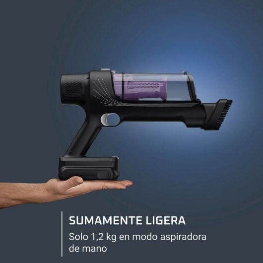 - GRAN AUTONOMÍA SIN CABLE: la batería de larga duración ofrece hasta 45 min* de autonomía ininterrumpida para una limpieza completa de todo tu hogar (* usando la aspiradora de mano en el potente modo Eco)
