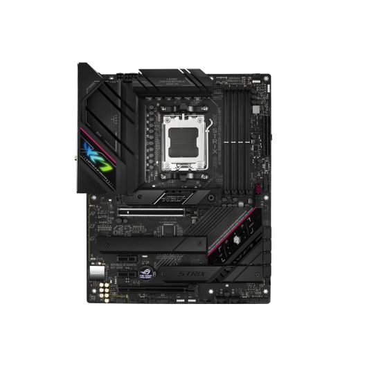ASUS ROG STRIX B650E-F GAMING WIFI. Fabricante de procesador: AMD, Socket de procesador: Zócalo AM5, Procesador compatible: AMD Ryzen 7. tipos de memoria compatibles: DDR5-SDRAM, Memoria interna máxima: 128 GB, Tipo de ranuras de memoria: DIMM. Interfaces de disco de almacenamiento soportados: M.2, SATA III, Tipos de unidades de almacenamiento admitidas: HDD & SSD, Niveles RAID: 0, 1, 10. Tipo de interfaz ethernet: 2.5 Gigabit Ethernet, Controlador LAN: Intel I225-V, Estándar Wi-Fi: Wi-Fi 6E (802.11ax). Componente para: PC, Factor de forma: ATX, Familia del chipset: AMD