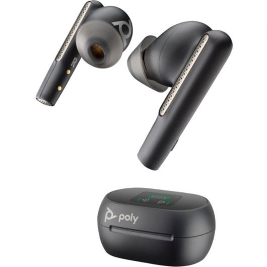 Audífonos Poly Voyager Free 60+ UC M, negro carbón + adaptador BT700 USB-C + estuche de carga con pantalla táctil