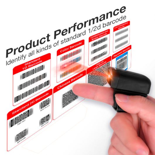 AVPos BT02-2D Lector de codigos 1D/2D/QR Portátil Finger USB Serie Bluetooth 300mAh Negro