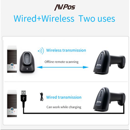 AVPos BT230-2D Lector de codigos 1D/2D/QR Inalambrico 60m Bluetooth 15m 2000mAh USB Negro