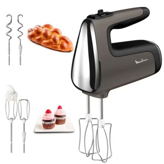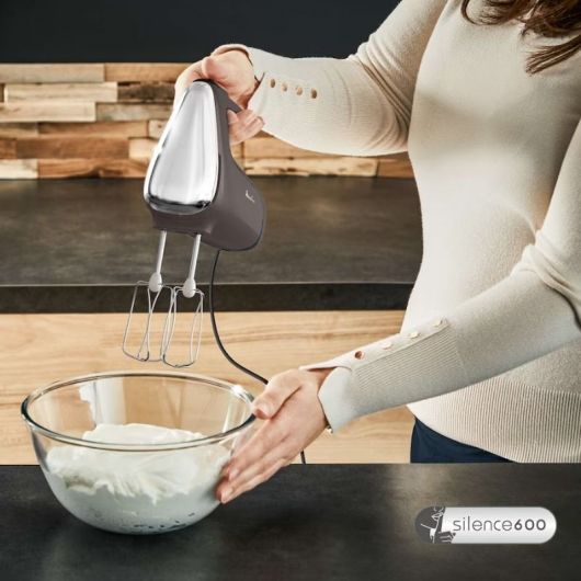 Con Moulinex, ahora es más fácil que nunca disfrutar del aroma que desprenden tus postres y otras recetas caseras al salir del horno. Es la batidora de repostería ideal. Lo que es más, Powermix Silence de Moulinex es la batidora amasadora más silenciosa y más potente,* ya que ha sido diseñada para ofrecer un rendimiento imbatible y generar menos ruido, con lo último en tecnología del silencio y un robusto motor de 600 W. Su potente motor permite mayor velocidad en la función turbo, de tal manera que ahorras tiempo en la elaboración de tus recetas. Descubre que cómodo es batir y amasar con sus excepcionales niveles de silencio, gracias a su flujo de aire optimizado y a su avanzada tecnología de amortiguación del ruido, para que disfrutes de un sólido rendimiento y de unos resultados perfectos incluso con las masas más densas. Dispone de un asa integrada de fácil agarre con un suave acabado, así como un regulador de velocidad y función turbo para batir con total facilidad. Sus dos varillas de acero inoxidable baten, mezclan y montan preparaciones ligeras a la perfección, mientras sus dos ganchos de amasar de acero inoxidable son ideales para las masas más espesas. *de Moulinex