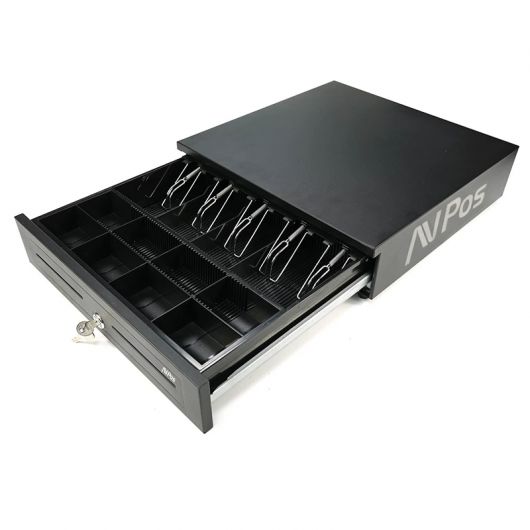 Cajon Portamonedas AVPos Cash-U285 41cm automatico Acero 5 Billetes 8 Monedas Negro RJ-11 Bandeja Extraible