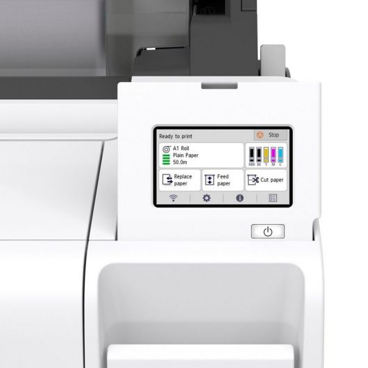 Canon imagePROGRAF TM-340. Tecnología de impresión: Bubblejet, Resolución máxima: 2400 x 1200 DPI, Lenguajes de descripción de páginas: CALS G4, HP-GL/2, HP-RTL, JPEG. Tamaño máximo de impresión: A0 (841 x 1189 mm), Tipos de papel: Papel normal, Rodillo, ISO tamaño de serie A (A0…A9): A0, A1, A3, A3+. Conector USB: USB Tipo B, Ethernet LAN, velocidad de transferencia de datos: 10,100,1000 Mbit/s, Tecnología de impresión móvil: Apple AirPrint. Color del producto: Negro, Blanco, Diagonal de la pantalla: 10,9 cm (4.3′), Tipo de control: Tocar. Consumo energético: 65 W, Consumo de energía (apagado): 0,1 W, Consumo energético (en suspensión): 2,2 W