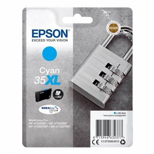 - Cartucho de tinta Epson 35XL original (candado) de color cian con una capacidad de 20.3ml