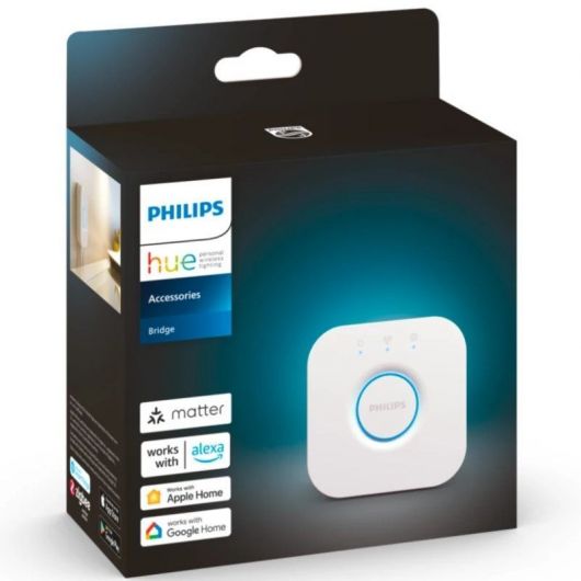 El Hue Bridge es compatible con Matter, la nueva plataforma para dispositivos conectados. Esto significa que las luces y accesorios Philips Hue son compatibles automáticamente con Matter y que también puedes integrar fácilmente otras marcas de hogar inteligente a través de Matter.