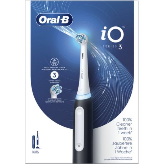 El cepillo de dientes eléctrico iO 3 incorpora la mejor tecnología de Oral-B, que combina un cabezal redondo inspirado en los cepillos profesionales con filamentos microvibrantes, para ofrecer una sensación de limpieza profesional en casa. El sensor de presión inteligente evita que te cepilles demasiado fuerte o suave para proteger mejor tus encías. El sensor de presión inteligente te avisa cuando te cepillas con demasiada presión. Cambia el cabezal de tu cepillo de dientes Oral-B iO cada 3 meses para obtener los mejores resultados.