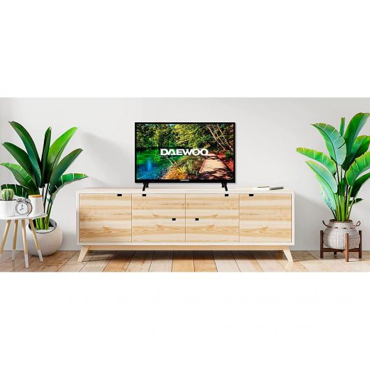 Televisor DAEWOO 24DM54HA1 con pantalla de 24′ Direct LED HD HDR, 1366 x 768 píxeles, Smart TV, Android con WiFi, bluetooth y sintonizador satélite, sistema de sonido con 2.5W en 2.0ch, 3xHDMI, 2xUSB, ethernet, VGA y CI, compatible con VESA 75×75