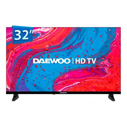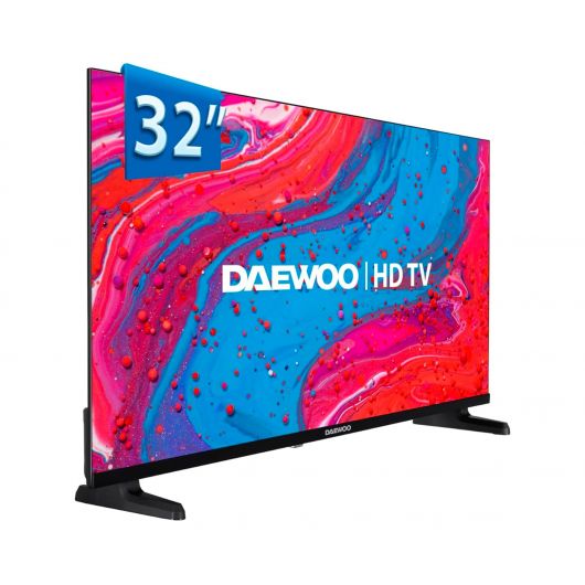 Televisor DAEWOO 32DM85HV en color negro con pantalla de 32′ DLED con resolución HD Ready, 1366 x 768 píxeles, HDR, Smart TV con sistema operativo VIDAA, procesador Quad Core, Wifi Integrado, jack 3.5mm, sintonizador satélite, sistema de sonido con 2 x 4W RMS, 2xHDMI, 1xUSB, 1xEthernet, salida óptica, compatible con VESA 75×75