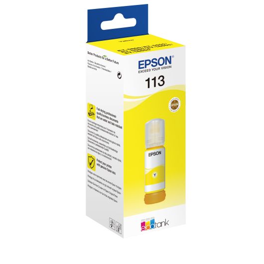Copias de aspecto profesionalDisfruta de copias excelentes con textos claros y colores vivos con esta tinta de alta calidad y fiabilidad. La serie 113 cuenta con todas las tintas pigmentadas para producir copias nítidas resistentes a las manchas y a los rotuladores. Gracias al secado rápido del pigmento, esta tinta resulta ideal para producir copias a doble cara.Impresión de miles de páginasResulta impresionante la gran cantidad de páginas que puedes imprimir con un solo pack: hasta 7500 páginas en negro y 6000 en color1.Fácil de usarLa recarga de tu impresora EcoTank es sencilla y cómoda gracias a las botellas de tinta intuitivas, antigoteo y que puedes volver a cerrar para un próximo uso. Gracias a un mecanismo especial, estas botellas de tinta solo permiten insertar los colores correctos en cada depósito.Alta calidad y fiabilidadLos papeles y las tintas originales de Epson se han desarrollado específicamente para funcionar a la perfección con sus impresoras y así aportar resultados siempre espectaculares. La calidad de la gama de productos Epson es el resultado de contar con la más alta tecnología en las fábricas propias, así como investigación y desarrollo continuos.