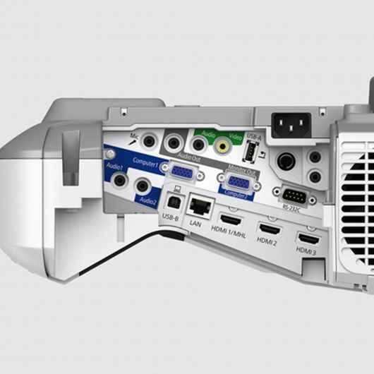 Características Tipo de producto Ultra short throw projector Certificacion TCO Nivel de ruido 35 dB Exhibicion en pantalla (OSD) Y Nivel de ruido (modo económico) 30 dB Proteccion mediante contraseña Y Interactivo Y Compatible con entrada interactiva Interactive pen/Touch Condiciones ambientales Intervalo de humedad relativa durante almacenaje 10 – 90 % Intervalo de humedad relativa para funcionamiento 20 – 80 % Intervalo de temperatura operativa 5 – 40 C Intervalo de temperatura de almacenaje -10 – 60 C Conexion Ethernet Y Ethernet LAN, velocidad de transferencia de datos 10,100 Mbit/s Contenido del embalaje Software incluido Easy Interactive Tools, EasyMP Multi PC Projection, Epson Projektor Management Guía de configuracion rápida Y Mando a distancia incluido Y Cables incluidos AC Pilas incluidas Y Soportes de montaje incluidos Y Adaptador WLAN incluido Y Tarjeta de garantía Y Control de energía Fuente de energía AC Consumo (modo de ahorro) 309 W Consumo de energía (inactivo) 0.37 W Frecuencia de entrada AC 50/60 Hz Consumo energético 354 W Datos logísticos Cantidad por palé 12 pieza(s) Anchura del palé 800 mm Longitud del palé 1200 mm Altura del palé 150 mm Cantidad por capa de palet 2 pieza(s) Cantidad por capa de palé (Reino Unido) 2 pieza(s) Cantidad por palé (Reino Unido) 12 pieza(s) Longitud del palé (Reino Unido) 1200 mm Anchura del palé (Reino Unido) 1000 mm Altura del palé (Reino Unido) 150 mm Desempeño Color del producto White,Grey País de origen Philippines Relacion de aspecto nativa 16:10 Detalles técnicos Código de Sistema de Armomizacion (SA) 85286200 Funcion de pantalla USB 3 in 1: Image / Mouse / Sound Voltaje de entrada AC 100-240 V Diseño Indicadores LED Y Ranura para cable de seguridad Y Ubicacion Wall Tipo de ranura de bloqueo del cable Kensington Pantalla incorporada N Posicionamiento de mercado Ulta short throw Empaquetado Peso del paquete 21600 g Profundidad del paquete 740 mm Altura del paquete 335 mm Ancho del paquete 490 mm Cantidad por paquete 1 pieza(s) Manual de usuario Y Fuente luminosa Potencia de la lámpara 250 W Tipo de fuente luminosa Lamp Vida útil de la fuente luminosa (modo económico) 10000 h Duracion de la fuente luminosa 5000 h Medios de almacenaje Tarjeta de lectura integrada N Multimedia Potencia estimada RMS 16 W Altavoces incorporados Y Otras características RS-232C Y Peso y dimensiones Altura 149 mm Ancho 367 mm Profundidad 400 mm Peso 5800 g Proyector Razón de contraste (típica) 14000:1 Intervalo de escaneado vertical 100 – 120 Hz Tecnología de proyeccion 3LCD Brillo de proyector 3500 lúmenes ANSI Compatibilidad de tamaño de pantalla 60 – 100 ‘ Correccion vertical de keystone (trapezoide) -3 – 3 Correccion trapezoidal, horizontal -3 – 3 Relacion de contraste (dinámico) 14000:1 Brillo de proyector (modo económico) 2900 lúmenes ANSI Tamaño de matriz 0.59 ‘ Sincronizacion vertical (min) 0.1 kHz Sincronizacion vertical (max) 0.12 kHz Relaciones de aspecto compatibles 16:10 Distancia de proyeccion (wide) 0 – 0.4 m Distancia de proyeccion (tele) 0 – 0.6 m Resolucion original del proyector WXGA (1280×800) Salida de luz de color 3500 lúmenes ANSI Salida de luz blanca 3500 lúmenes ANSI Número de colores 1.07 billion colours Puertos e Interfaces Micrófono, jack de entrada Y Puerto DVI N Cantidad de puertos VGA (D-Sub) 3 Entrada de S-Video 1 Entrada de video compuesto 1 Entrada de audio (L,R) 1 Entrada de CA Y Número de puertos HDMI 3 Enlace de alta definicion móvil (MHL) Y Soporte de control de consumo electrónico Y Número de puertos USB 2.0 tipo B 1 Salidas para auriculares 1 Puerto – RS-232 1 Ethernet LAN (RJ-45) cantidad de puertos 1 Cantidad de puertos USB 2.0 1 Tipo de serie de interfaz RS-232C Requisitos del sistema Sistema operativo Windows soportado Windows 10,Windows 8,Windows 8.1 Sistema operativo MAC soportado Mac OS X 10.10 Yosemite,Mac OS X 10.7 Lion,Mac OS X 10.8 Mountain Lion,Mac OS X 10.9 Mavericks Sistema operativo Linux soportado Y Compatible con Mac Y Sistemas operativos compatibles Linux, Mac OS 10.10.X, Mac OS 10.7.X, Mac OS 10.8.X, Mac OS 10.9.X, Ubuntu 14.10, Ubuntu 15.04, Ubuntu 15.10, Ubuntu 16.04 LTS, Windows 10, Windows 8, Windows 8.1 Sistema de lentes Zoom digital 1.35 x Rango de apertura 0 – 1.6 Enfoque Manual Intervalo de longitud focal 3.7 mm Relacion de alcance 0.28 – 0.37:1 Alcance de zoom 1.35:1 Distancia focal fija 3.7 mm Tipo de zoom Auto Software Compatibilidad de software via: AMX, Crestron (Network), Control4 Sostenibilidad Certificados de sostenibilidad TCO Vídeo Full HD N 3D N Procesamiento de vídeo 10 bit Modos de color (2D) Cinema,Dynamic Modos de color de vídeo Blackboard,Cinema,Dynamic,Presentation,sRGB