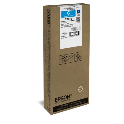 Epson WF-C5xxx Series Ink Cartridge L Cyan. Tipo: Original, Colores de impresión: Cian, Marca compatible: Epson. Ancho del paquete: 40 mm, Profundidad del paquete: 290 mm, Altura del paquete: 120 mm. Cantidad por caja: 10 pieza(s)