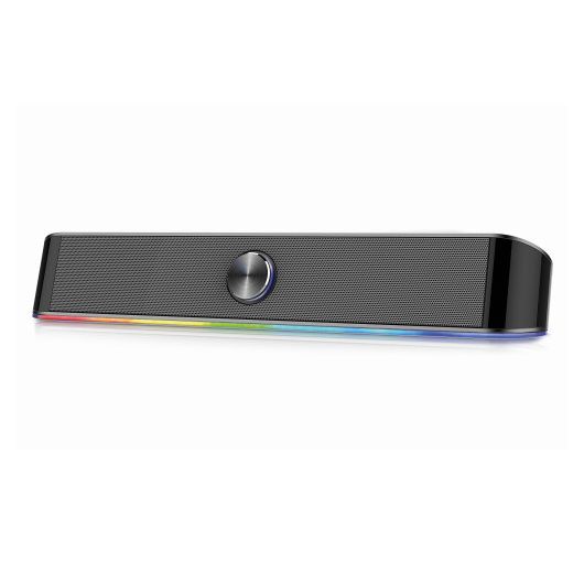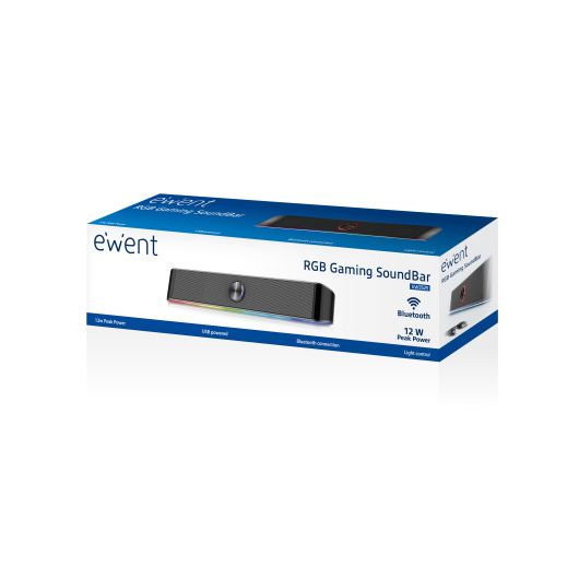 La barra de sonido estéreo EW3524 de EWENT con 12W de potencia máxima, se ha diseñado para llegar a todo el público gamer y a todos aquellos usuarios que desean disfrutar del mejor sonido sin necesitar un gran espacio. Su diseño de formato reducido, su accesibilidad en todo momento y su variedad de combinaciones de luces de colores garantizan una experiencia gaming inimaginable.La conexión Bluetooth de la barra de sonido EWENT EW3525 y su conexión de sonido mediante cable, permiten también prácticamente conectar casi cualquier televisor. Su mando volumen iluminado, permite apagar o encender el dispositivo a parte de subir o bajar el volumen.Los 12W de potencia máxima junto con la gran variedad de combinaciones de luces con control de luz táctil (puedes eligir entre 6 modos. Entre ellos rítmico, respiración o RGB fijo) hará que tu experiencia de juego sea inmejorable y disfrutes al máximo .Unicamente hay que realizar la conexión de su cable con conector jack de 3,5mm a la toma de auriculares de 3,5mm del PC o portátil y el cable USB al propio dispositivo donde se conecte el cable de sonido o una toma exterena USB de 5V para obtener electricidad.La barra de sonido EWENT EW3525 cuenta con la última tecnología Bluetooth que permirirá conectarla a su fuente de sonido Bluetooth y disgfrutar de su música preferida almacenada en su dispositivo. Su versátil tamaño la hace imprescindible para acompañarle durante sus viajes y de esta forma seguir disfrutando de su música en cualquier lugar. La conexión Bluetooth y su conexión de sonido mediante cable, permiten también prácticamente conectar casi cualquier televisor. Su mando volumen iluminado, permite apagar o encender el dispositivo a parte de subir o bajar el volumen.