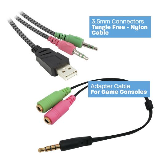 Los auriculares Play PL3321 son unos cómodos auriculares de juego con banda de cabeza ajustable, micrófono y potente unidad de bajos. Los auriculares están equipados con un efecto de iluminación RGB intermitente. El control de volumen y el interruptor de silencio del micrófono le permiten controlar el sonido en todo momento. Adecuados para jugar en su PC, Xbox One y PlayStation 4 con el adaptador de conector incluido. No tendrá que preocuparse más por los enredos gracias a su cable trenzado de nailon. Iluminación RGB intermitente Las almohadillas de los auriculares de juego se iluminan con un efecto RGB intermitente. Incluyen control de volumen e interruptor de silencio de micrófono El control de volumen en línea y el interruptor de silencio del micrófono le permiten controlar el sonido fácilmente con los auriculares. Silencie fácilmente su micrófono cuando no quiera que el resto de jugadores escuchen lo que está diciendo. Compatible con Xbox One y PlayStation 4 Estos auriculares cuentan con una banda para la cabeza ajustable y cómodas almohadillas para las orejas. Utilice el cable adaptador con clavija de 3,5mm que se incluye para conectar los auriculares con su videoconsola Xbox One o PlayStation 4. Cable de nailon que no se enreda El cable USB y el cable con mini clavija de los auriculares PL3321 tienen una cubierta trenzada de nailon que evita todo tipo de enredos.