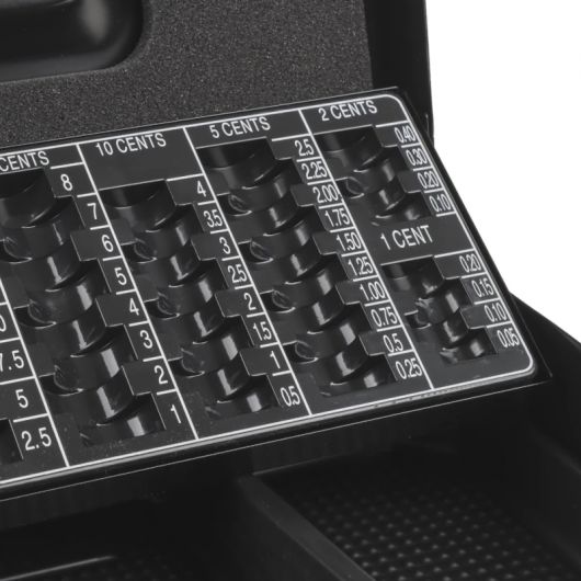 – Bandeja extraíble con separadores para 8 tamaños de monedas: