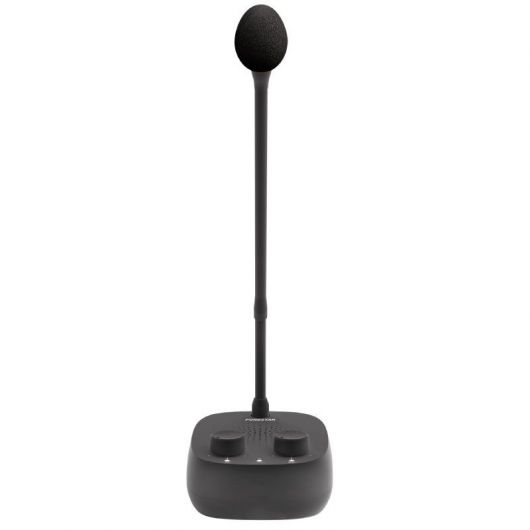 Intercomunicador de ventanilla que facilita la comunicación a través de ventanillas o mamparas.
