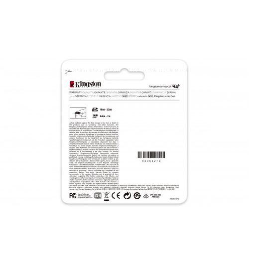 Capture vídeos de calidad cinematográfica en formatos Full HD y UHD 4K Las tarjetas SD Canvas Select Plus han sido diseñadas para obtener un excelente rendimiento, velocidad y durabilidad, específicamente para cargas de trabajo de alta densidad, como transferir y desarrollar fotos de alta resolución o capturar y editar vídeos de alta definición. Puede alcanzar velocidades UHS-I de Clase 10 de hasta 100 MB/s* para facilitar el almacenamiento y agilizar las transferencias. Dispone de una interfaz UHS-I capaz de grabar vídeos Full HD y Ultra HD de 4K de calidad cinematográfica. Las tarjetas SD Canvas Select Plus han sido construidas para funcionar en los entornos y condiciones más difíciles, para que pueda llevarla consigo sabiendo que sus archivos, fotos y vídeos están protegidos. Disponible en múltiples capacidades, de hasta 512 GB**, con garantía vitalicia. – Velocidades de UHS-I Clase 10 de hasta 100 MB/s* – Capture imágenes y vídeos en formatos Full HD (1080 píxeles) y UHD 4K – Capacidades de hasta 512 GB** – Duraderas – Garantía vitalicia * La velocidad puede variar según el tipo de hardware que aloja al dispositivo, el software y el uso. ** Algunas de las capacidades especificadas en un dispositivo de almacenamiento Flash se emplean para formateo y otras funciones por tanto no están disponibles para el almacenamiento de datos. Por este motivo, la capacidad real de almacenamiento de datos es inferior a la indicada en los productos. Consulte información más detallada en la Guía de memoria Flash de Kingston, en kingston.com/flashguide.