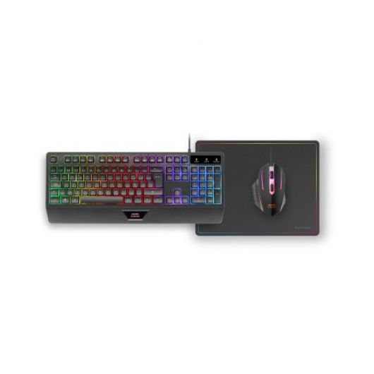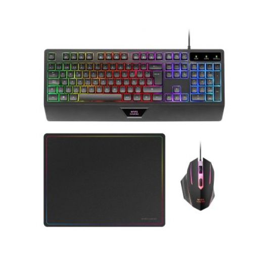 Mars Gaming MCP124 Combo 3 en1 Teclado LED RGB + Ratón RGB 3200 DPI + Alfombrilla Negro – Portugués