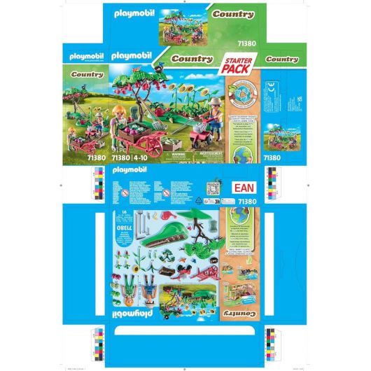 El set incluye dos figuras PLAYMOBIL, guadaña, cultivador de jardín, carretilla, regadera, dos sandías, un árbol, manzanas y muchos más extras para emocionantes juegos de rol alrededor de la granja.