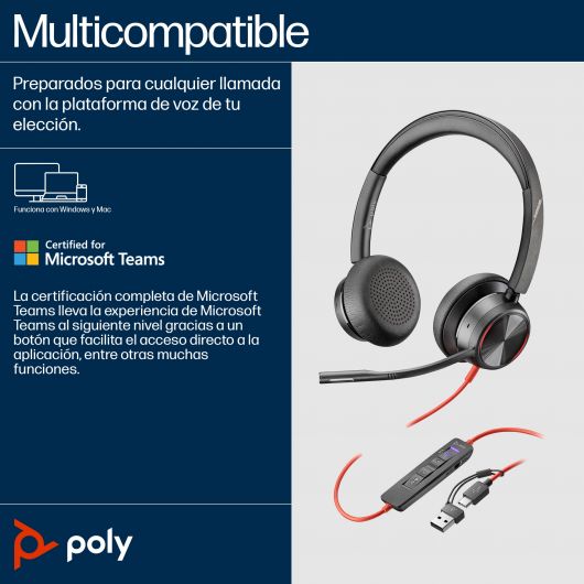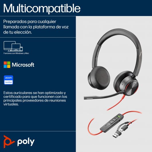 Poly Blackwire 8225 Auriculares estéreo USB-C + Adaptador USB-C/A