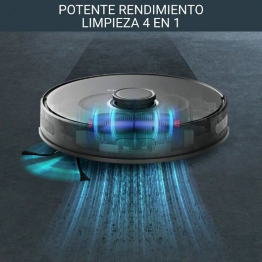 - Con una sólida potencia de succión de 2700 Pa, ofrece una limpieza 4 en 1: barre, cepilla, aspira y friega
