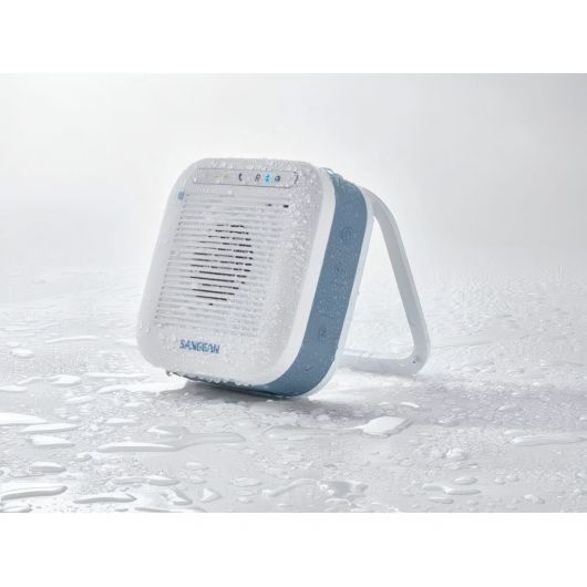 Altavoz portátil SANGEAN H200 en color blanco resistente al agua, con impermeabilidad de JIS7, completamente sumergible, por lo que siempre tendrás tranquilidad sabiendo que el H200 es resistente al agua y listo para ir donde quieras llevarlo. Bluetooth 4.1, NFC, función de manos libres, entrada auxiliar, indicador de batería, audio superior y batería recargable de larga duración de 2200 mAh. Incluye mango plegable.