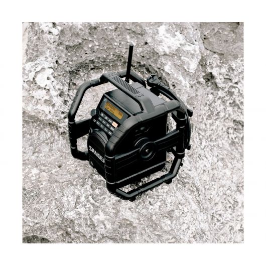 Construida con una jaula protectora, esta radio es resistente a los golpes y está preparada para cualquier lugar de trabajo.