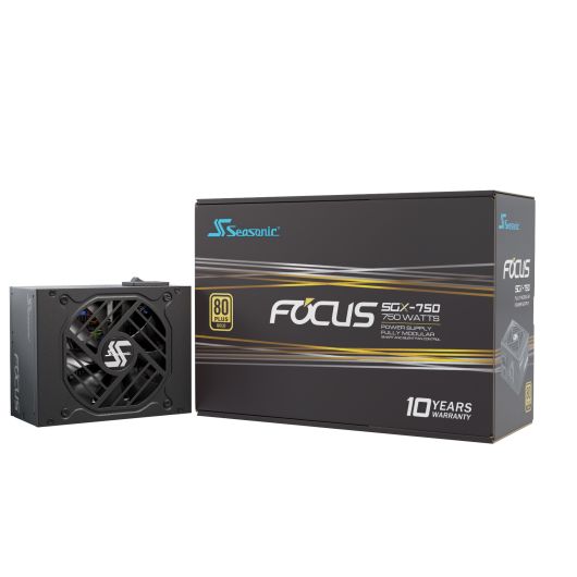 Seasonic FOCUS SGX-750 (2021). Potencia total: 750 W, Voltaje de entrada AC: 100 – 240 V, Frecuencia de entrada AC: 50 – 60 Hz. Alimentador de energía para tarjeta madre: 20+4 pin ATX, Longitud del cable de alimentación de la placa base: 35 cm, Longitud del cable de alimentación SATA: 600 mm. Utilizar con: PC, Factor de forma de fuente de alimentación (PSU): SFX, Certificación 80 PLUS: 80 PLUS Gold. Color del producto: Negro, Tipo de enfriamiento: Activo, Diámetro de ventilador: 9,2 cm. Ancho: 125 mm, Profundidad: 100 mm, Altura: 63,5 mm