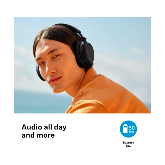- Duración de batería: Hasta 50 horas de reproducción de música mediante Bluetooth y con cancelación de ruido activa (condiciones de prueba: iPhone, nivel de volumen medio)