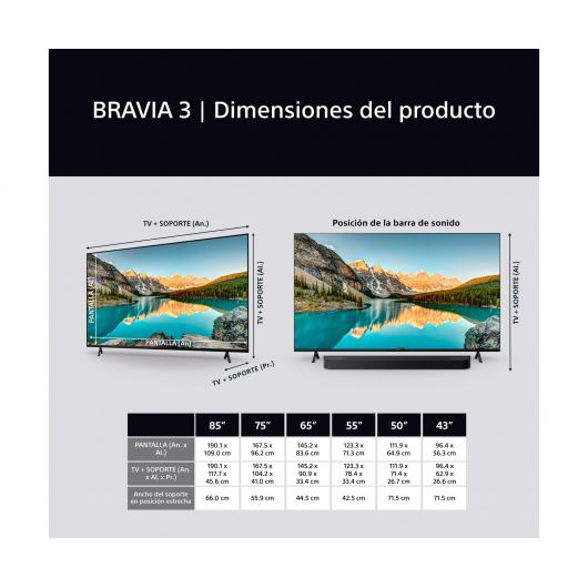 Televisor SONY BRAVIA 3 K-55S3 en color negro con pantalla de 55′ Direct LED UHD 4K HDR, 3840 x 2160 píxeles, Smart TV, Android TV con WiFi 6, bluetooth 5.3, asistente de voz y sintonizador satélite, sistema de sonido con 20W en 2.0ch, 4xHDMI, 2xUSB, CI+, Ethernet, x1 salida audio digital, compatible con VESA 300×300