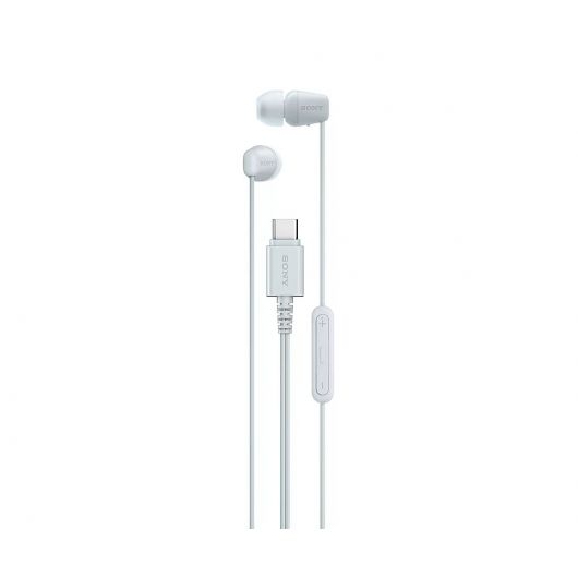 Auriculares in ear con cable USB-C SONY IER-EX15C en color blanco con sonido de alta calidad, graves potentes, cable dentado que contribuye a reducir los enredos, carcasa cómoda y almohadillas de silicona con ajuste seguro de diferentes tamaños, mando a distancia integrado con ajustes de volumen, reproductor, pausa y silenciado.