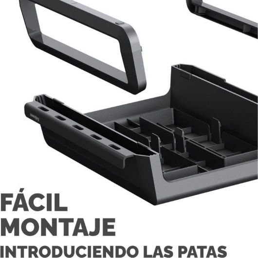 - Dispone de un canal en la parte delantera con acceso a la carga de los dispositivos