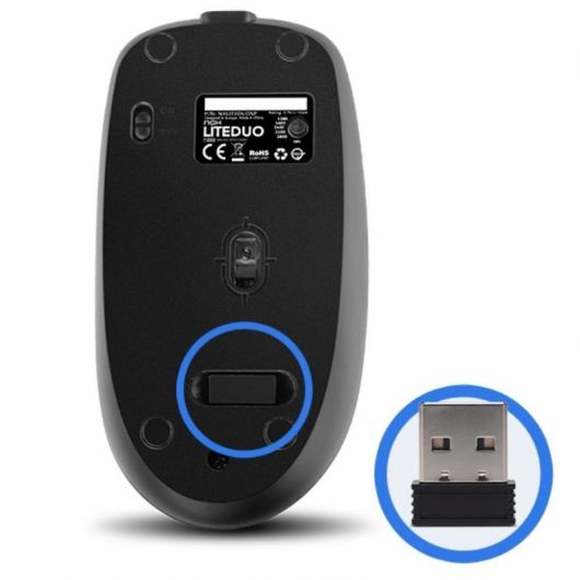Receptor inalámbrico USB 2.4 GHz integrado en la parte inferior del ratón