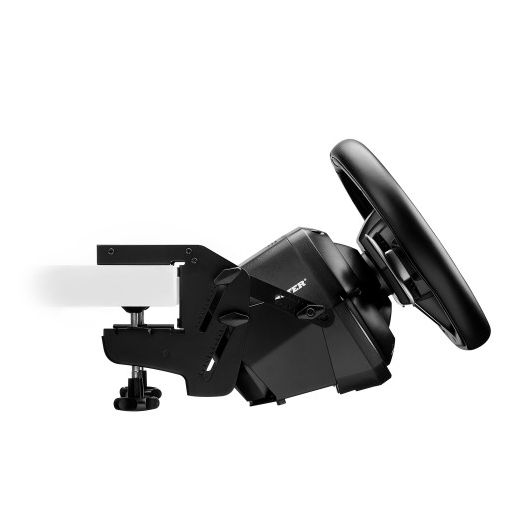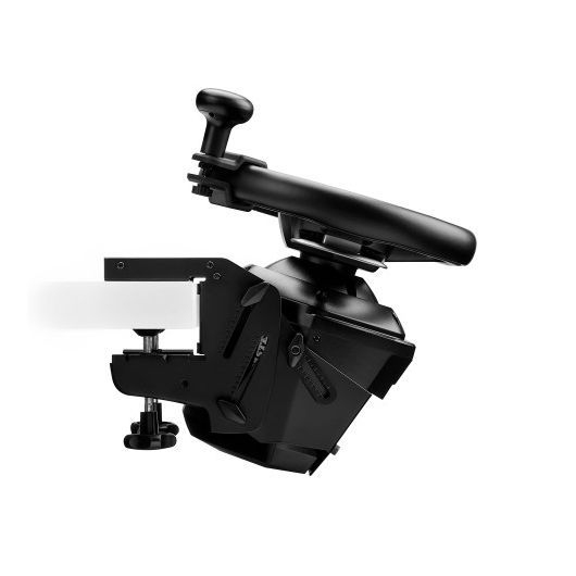 El SimTask Steering Kit está equipado con un sistema de fijación de anclaje adecuado para escritorios con un grosor de entre 15 y 50 mm. El pomo giratorio se puede montar fácilmente en el volante, sin herramientas.