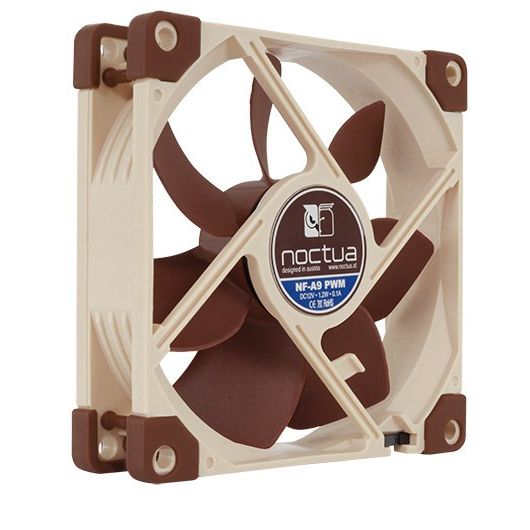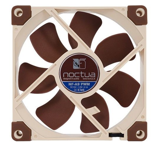 Noctua NF-A9 PWM. Tipo: Ventilador, Diámetro de ventilador: 9,2 cm, Velocidad de rotación (máx.): 2000 RPM, Nivel de ruido (baja velocidad): 16,3 dB, Nivel de ruido (alta velocidad): 22,8 dB, flujo de aire: 78,9 m³/h, Presión máxima de aire: 2,28 mmH2O. Voltaje: 12 V. Ancho: 92 mm, Profundidad: 92 mm, Altura: 25 mm. Color del producto: Beige, Marrón